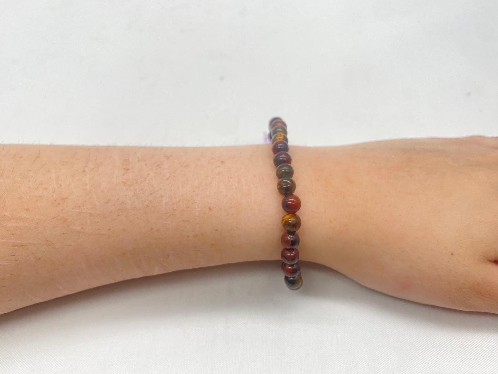 Blue, Gold, & Red Tiger Eye Bracelet – Medium Bead 6mm